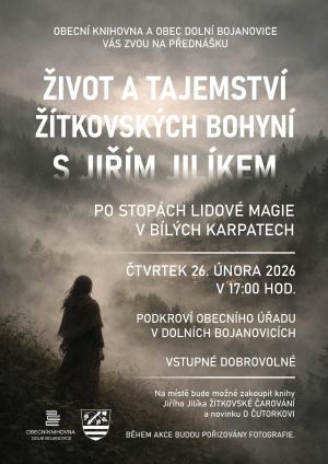 Obecní knihovna a obec Dolní Bojanovice zvou na zajímavou akci s názvem „Po stopách lidové magie v Bílých Karpatech“. Tato událost se uskuteční ve čtvrtek 26. února 2026 od 17:00 hodin v podkroví obecního úřadu. Vstupné je dobrovolné a na místě si návštěvníci budou moci zakoupit knihy Jiřího Jilíka.