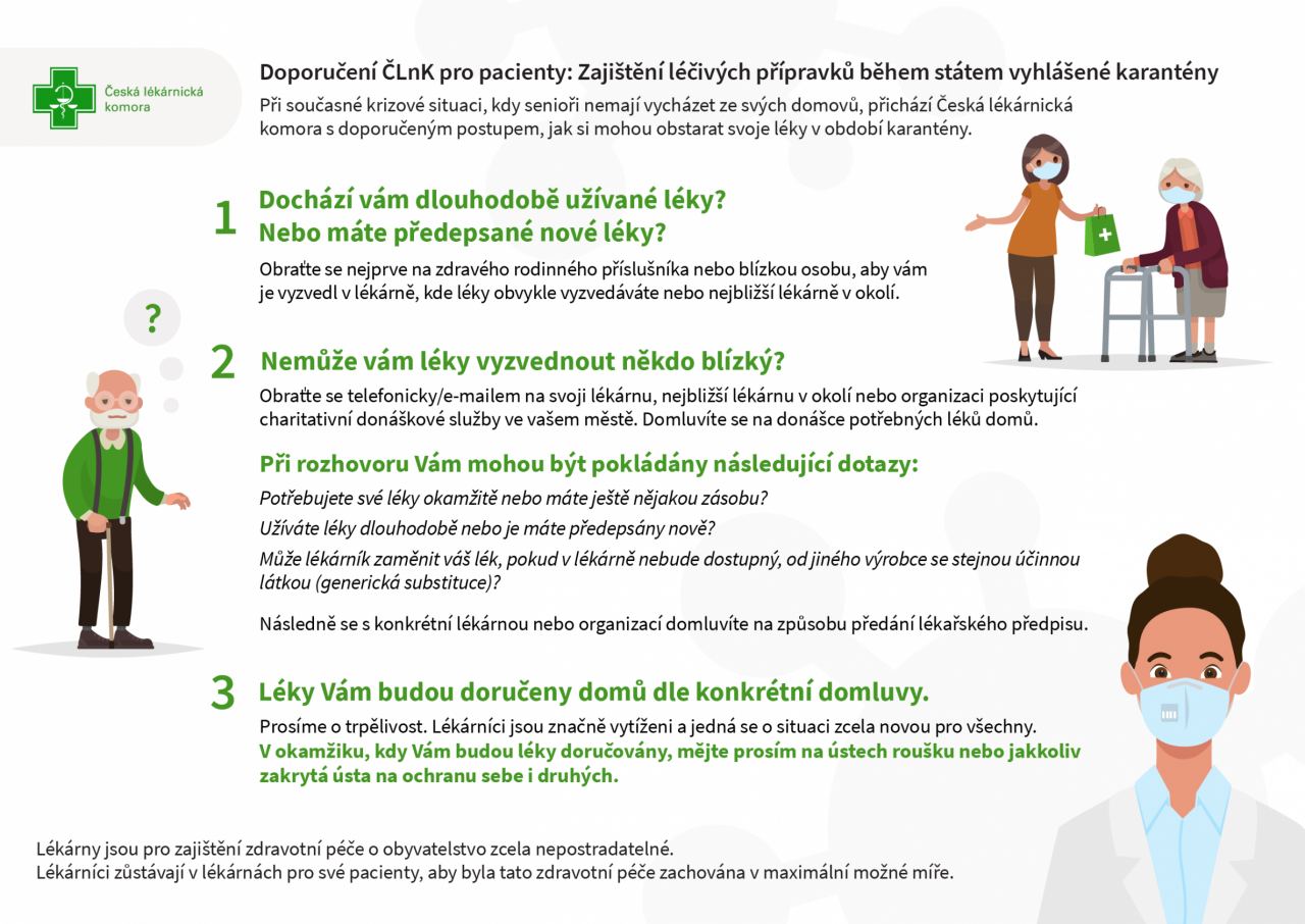 V době koronavirové krize zpracovala Česká lékarnická komora postup obstarávání léků pro seniory, kterým bylo doporučeno nevycházet z domu.